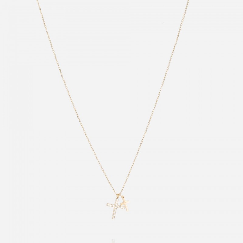 Collier ZAG BIJOUX en acier doré avec pendentifs strass sur chaine. Fermoir mousqueton. Longueur ajustable de 38cm à 43cm.