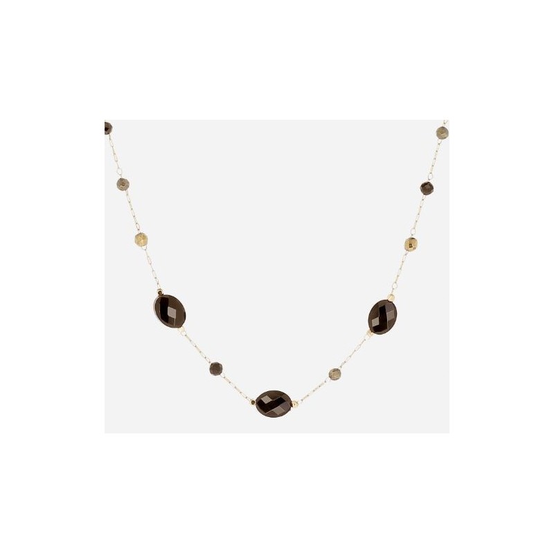 Collier ZAG BIJOUX en acier doré avec perles onyx sur chaine. Fermoir mousqueton. Longueur austable de 40cm à 45cm.
