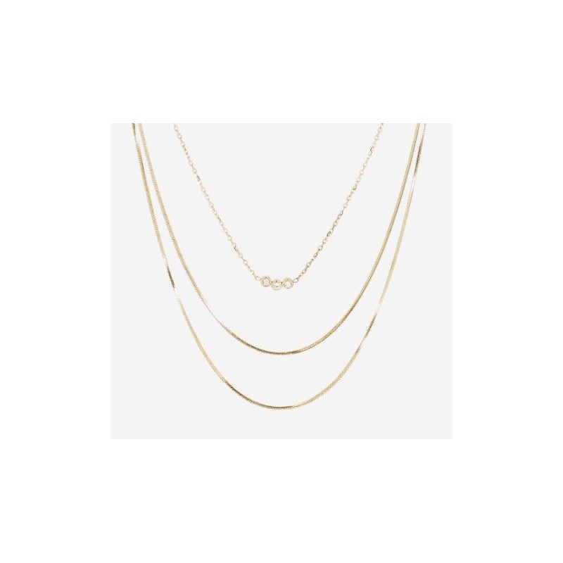 Collier ZAG BIJOUX en acier doré avec strass sur triple chaine. Fermoir mousqueton. Longueur austable de 40cm à 45cm.