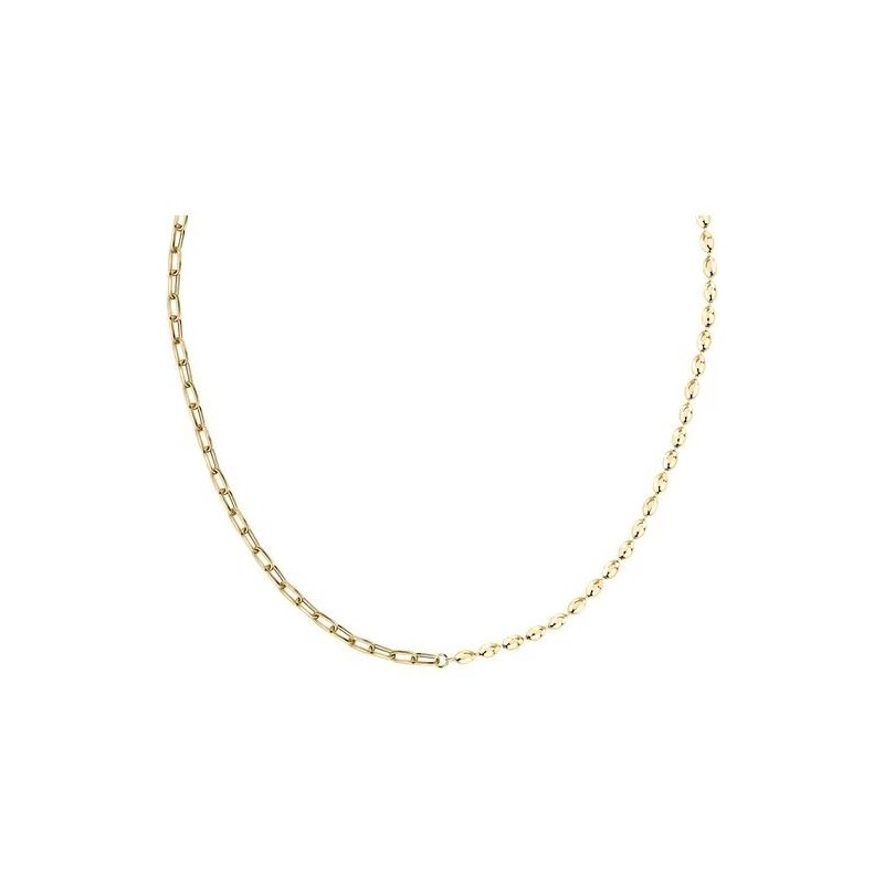 Collier MORELLATO en acier doré avec mailles rectangulaires et billes. Fermoir mousqueton. Longueur ajustable de 40cm à 45cm.