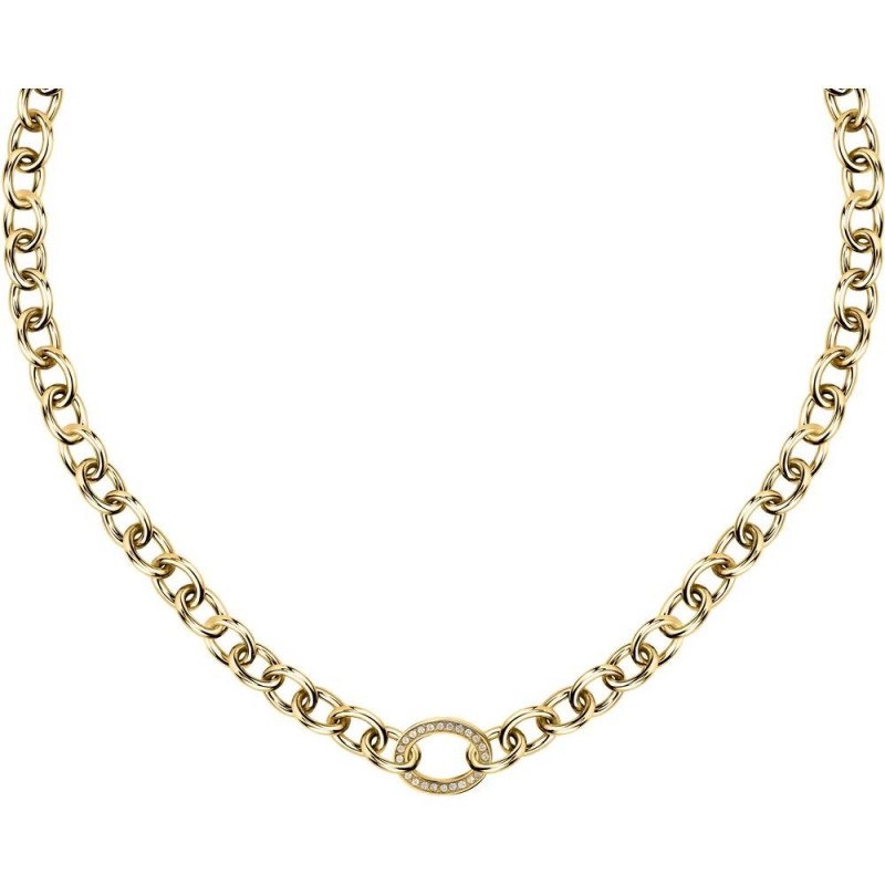 Collier MORELLATO en acier doré grosses mailles dont une avec strass. Fermoir mousqueton. Longueur ajustable de 40cm à 45cm.
