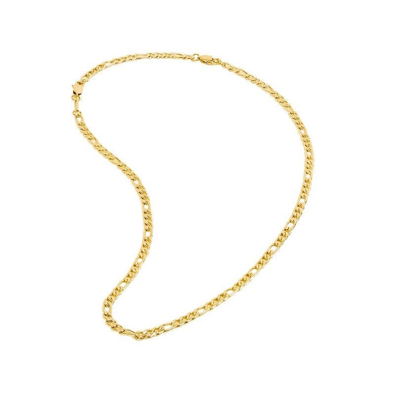 Collier GEMINI en acier doré maille figaro (5mm). Fermoir mousqueton. Longueur ajustable à 54cm et 64cm.