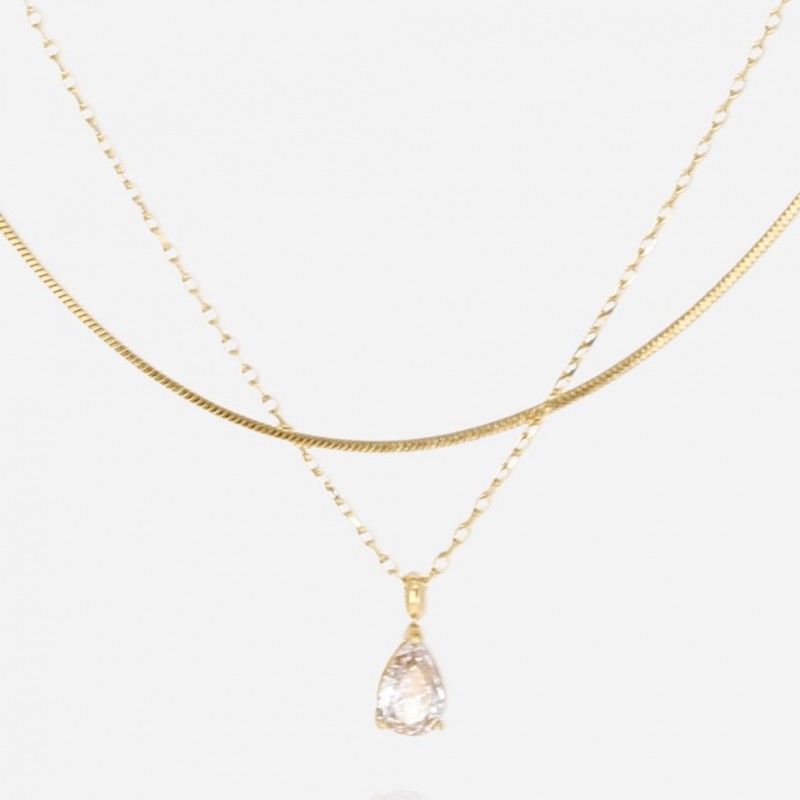 Collier ZAG BIJOUX en acier doré avec strass sur double chaine. Fermoir mousqueton. Longueur ajustable de 35cm à 40cm.