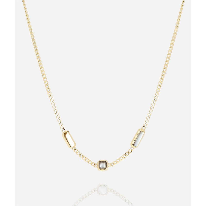 Collier ZAG BIJOUX en acier doré avec nacre grise sur chaine. Fermoir mousqueton. Longueur ajustable de 38cm à 43cm.