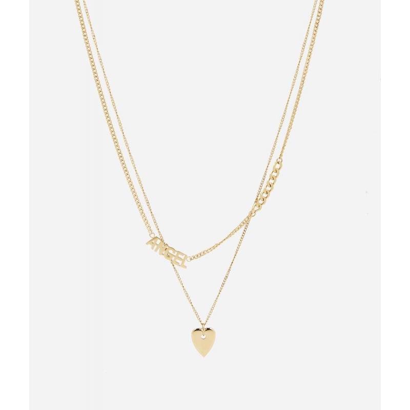 Collier ZAG BIJOUX en acier doré double chaines avec pendentif coeur. Fermoir mousqueton. Longueur ajustable de 38cm à 43cm.