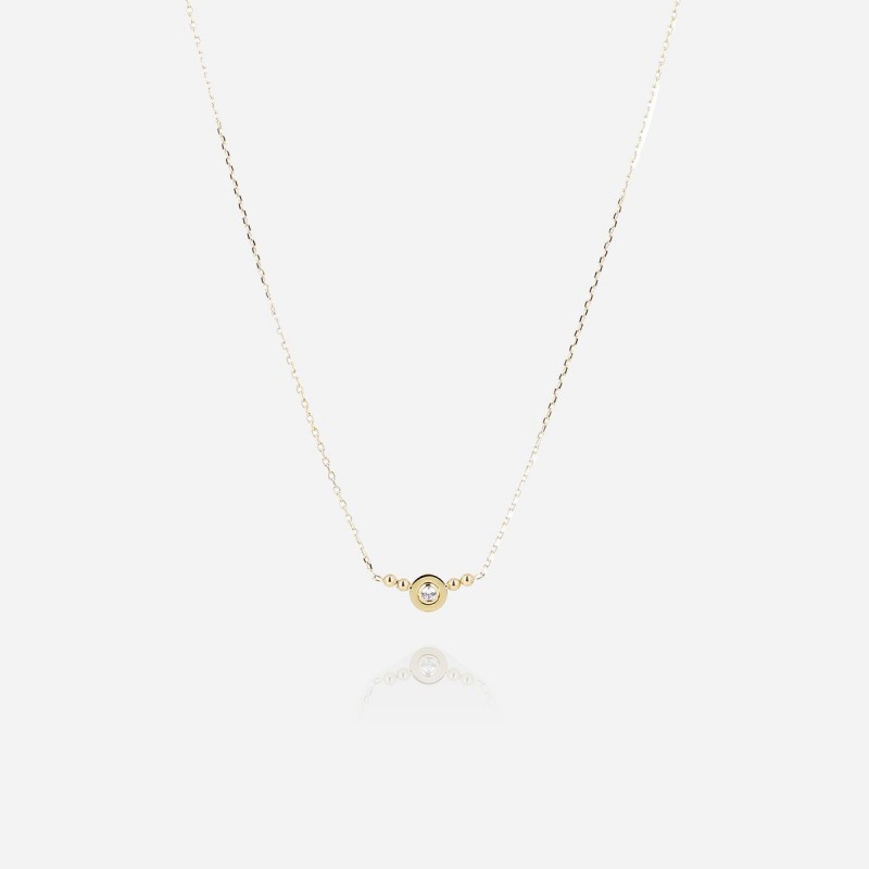 Collier ZAG BIJOUX en acier doré avec strass sur chaine. Fermoir mousqueton. Longueur ajustable de 38cm à 43cm.