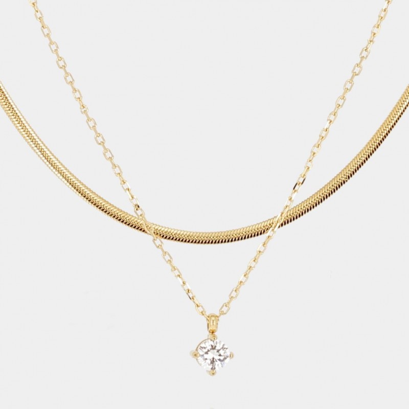 Collier ZAG BIJOUX en acier doré double chaines avec strass. Fermoir mousqueton. Longueur ajustable de 38cm à 43cm.