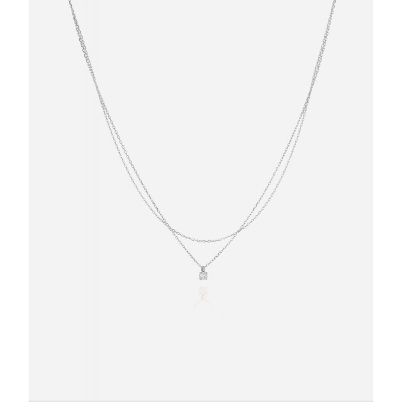 Collier ZAG BIJOUX en acier avec strass sur double chaine. Fermoir mousqueton. Longueur ajustable de 35cm à 40cm.