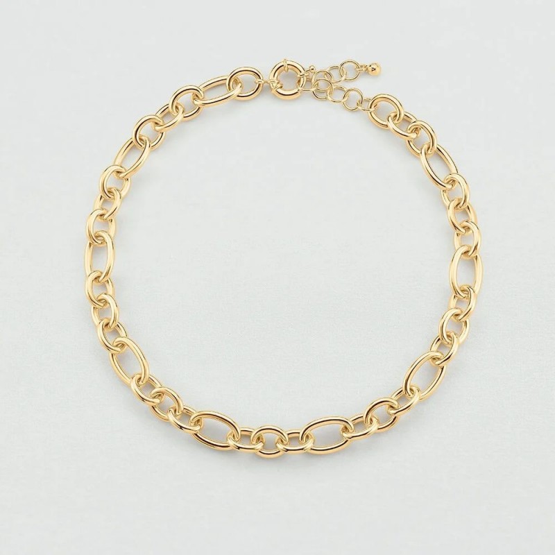 Collier AGATHA en laiton doré grosses mailles. Fermoir mousqueton. Longueur ajustable de 40cm à 45cm.