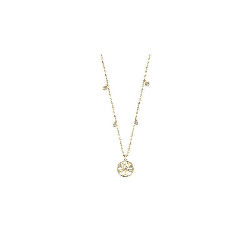 Collier LOTUS en acier doré avec pendentif arbre de vie sur chaine. Fermoir mousqueton. Longueur ajustable de 40cm à 45cm.