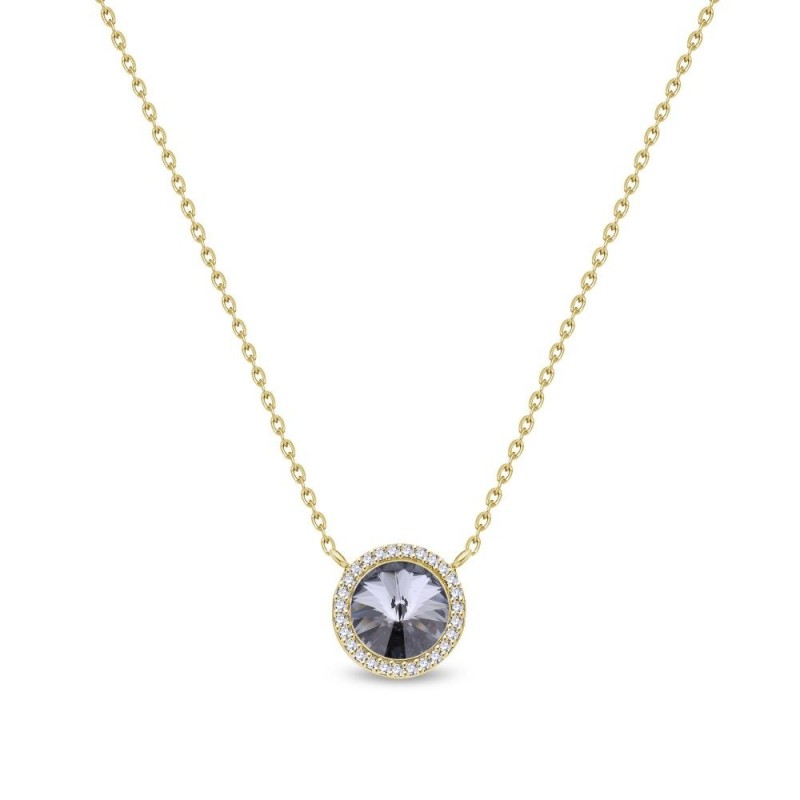 Collier SPARK en argent 925/1000 et plaque or avec pendentif cristal de Swarovski et oxydes de zirconium sur chaine maille forçat. Fermoir mousqueton. Longueur ajustable de 40cm à 45cm. Poids: 2.60g