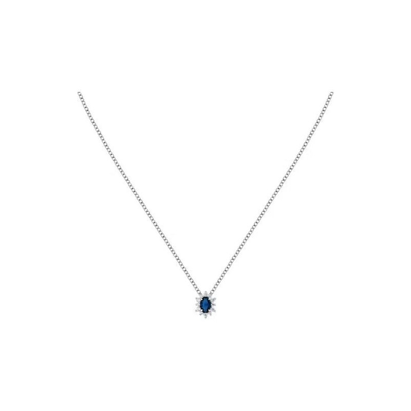 Collier MORELLATO en argent 925/1000 rhodié avec pendentif sertis d'oxydes de zirconium blancs et bleus sur chaine maille forçat. Fermoir mousqueton. Longueur ajustable de 38cm à 42cm. Poids: 3g