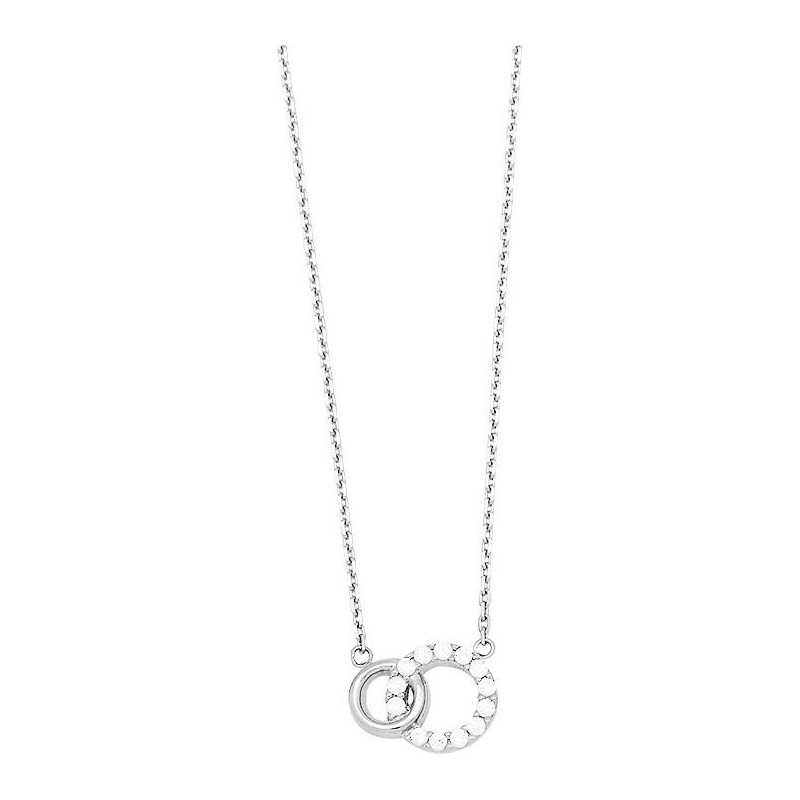Collier en argent 925/1000 rhodié avec pendentif deux cercles entrelacés dont un serti d'oxydes de zirconium sur chaine maille forçat. Fermoir anneau ressort. Longueur 42cm. Poids: 2.40g