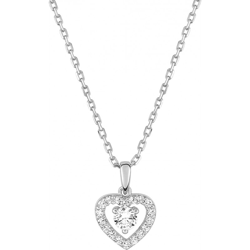 Collier en argent 925/1000 rhodié avec pendentif coeur sertis d'oxydes de zirconium sur chaine maille forçat. Fermoir anneau ressort. Longueur 42cm. Poids: 2.05g