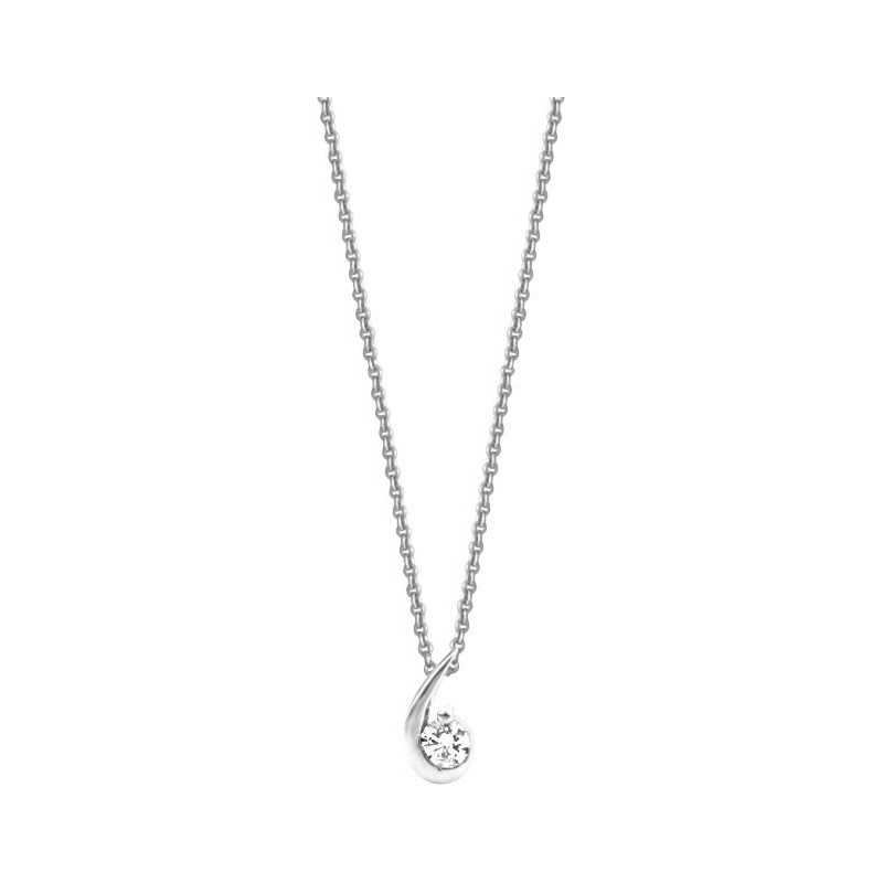 Collier en argent 925/1000 rhodié avec pendentif serti d'oxydes de zirconium sur chaine maille forçat. Fermoir anneau ressort. Longueur 42cm. Poids: 2g