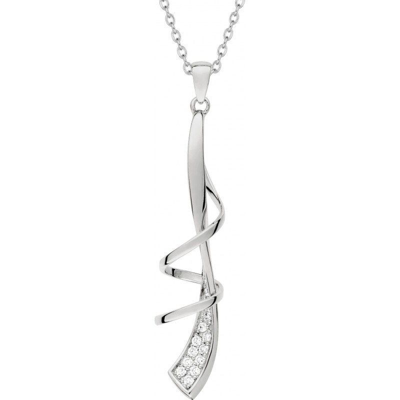 Collier en argent 925/1000 rhodié avec pendentif serti d'oxydes de zirconium sur chaine maille forçat. Fermoir mousqueton. Longueur ajustable de 40cm à 45cm. Poids: 4.45g