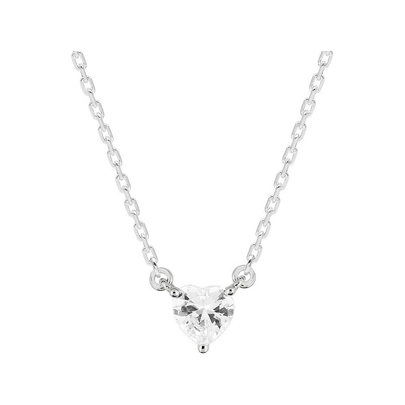 Collier en argent 925/1000 rhodié avec pendentif serti 3 griffes d'un oxyde de zirconium sur chaine maille forçat. Fermoir mousqueton. Longueur ajustable de 40cm à 45cm. Poids: 2g
