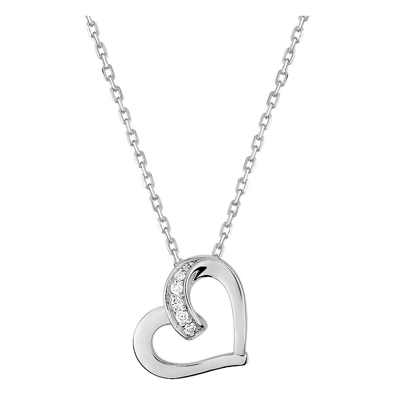 Collier en argent 925/1000 rhodié avec pendentifs coeur serti d'oxydes de zirconium sur chaine maille forçat. Fermoir mousqueton. Longueur ajustable de 40cm à 45cm. Poids: 2.59g