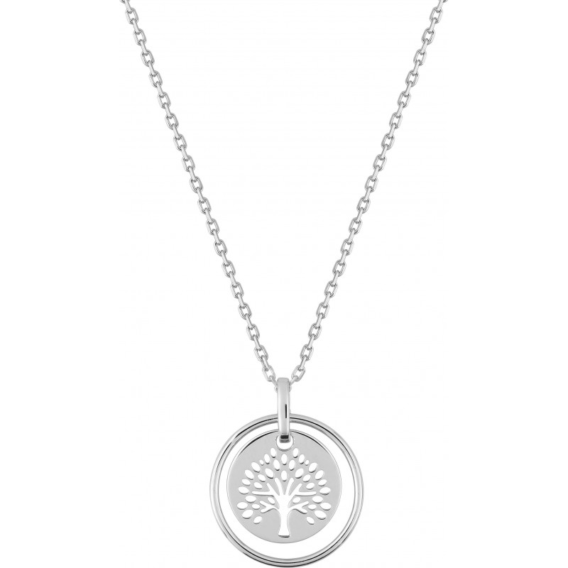 Collier en argent 925/1000 rhodié avec pendentif arbre de vie sur chaine maille forçat. Fermoir anneau ressort. Longueur ajustable de 40cm à 45cm. Poids: 2.20g