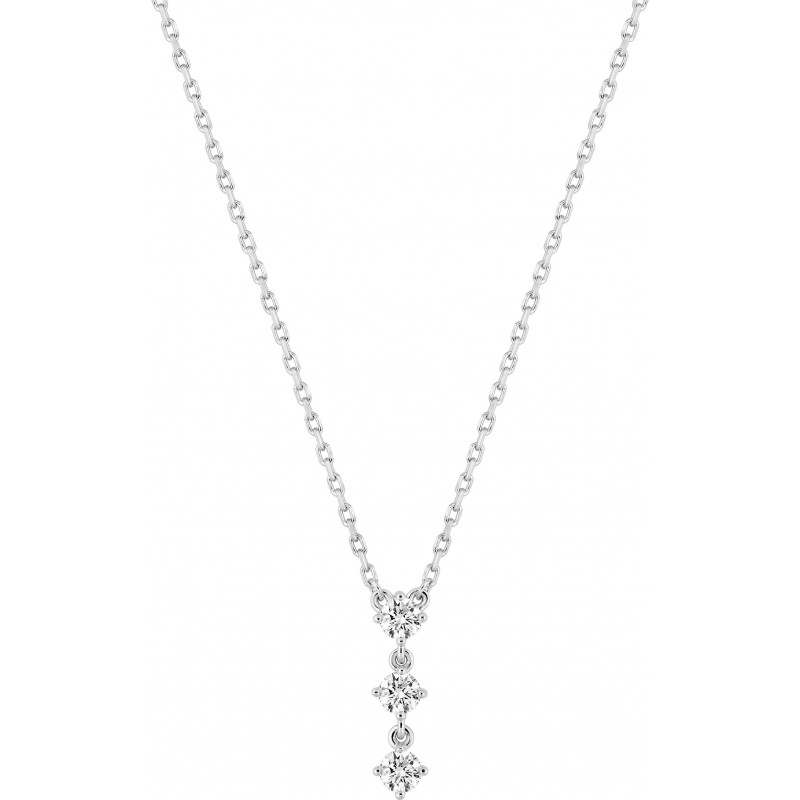 Collier en argent 925/1000 rhodié avec pendentif serti d'oxydes de zirconium sur chaine maille forçat. Fermoir anneau ressort. Longueur ajustable de 40cm à 45cm. Poids: 1.90g
