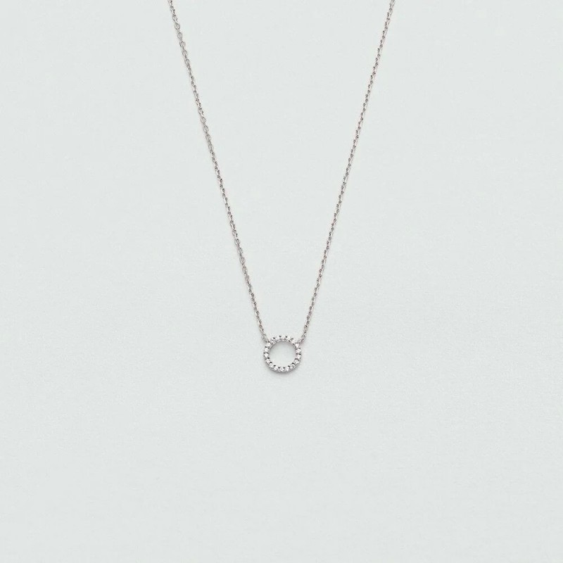 Collier AGATHA en argent 925/1000 rhodié avec pendentif rond sertis d'oxydes de zirconium sur chaine maille forçat. Fermoir mousqueton. Longueur ajustable de 40cm à 45cm.
