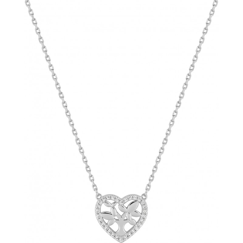 Collier en argent 925/1000 rhodié avec pendentif coeur sertis d'oxydes de zirconium sur chaine maille forçat. Fermoir anneau ressort. Longueur ajustable de 40cm à 45cm. Poids: 2.30g