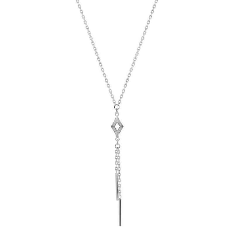 Collier en argent 925/1000 rhodié avec pendentif sur chaine maille forçat. Fermoir anneau ressort. Longueur 42cm. Poids: 1.90g