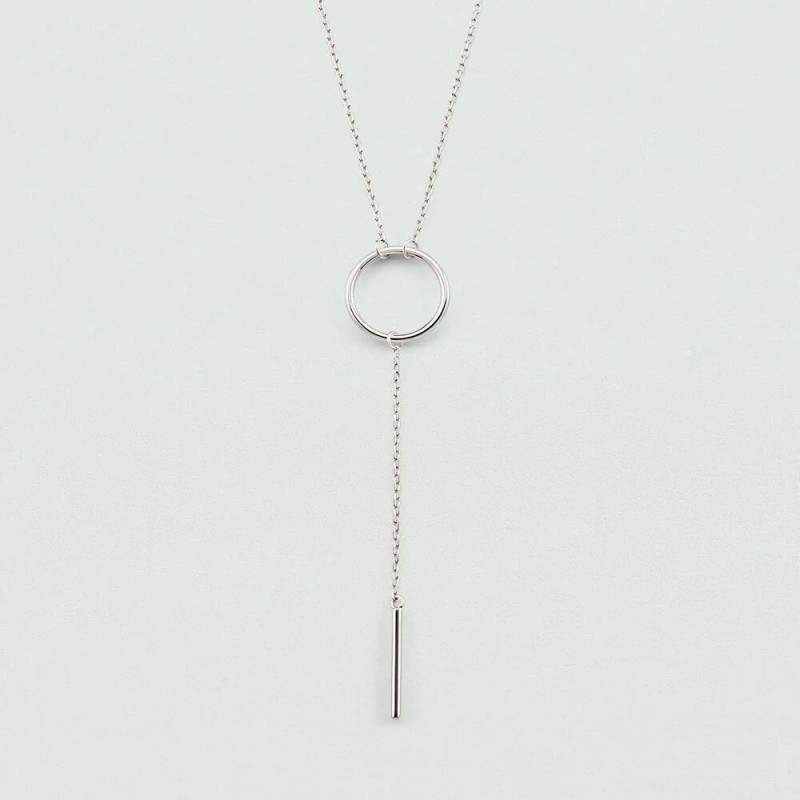 Collier AGATHA en argent 925/1000 rhodié avec pendentif cravate sur chaine maille forçat. Fermoir mousqueton. Longueur ajustable de 40cm à 45cm.