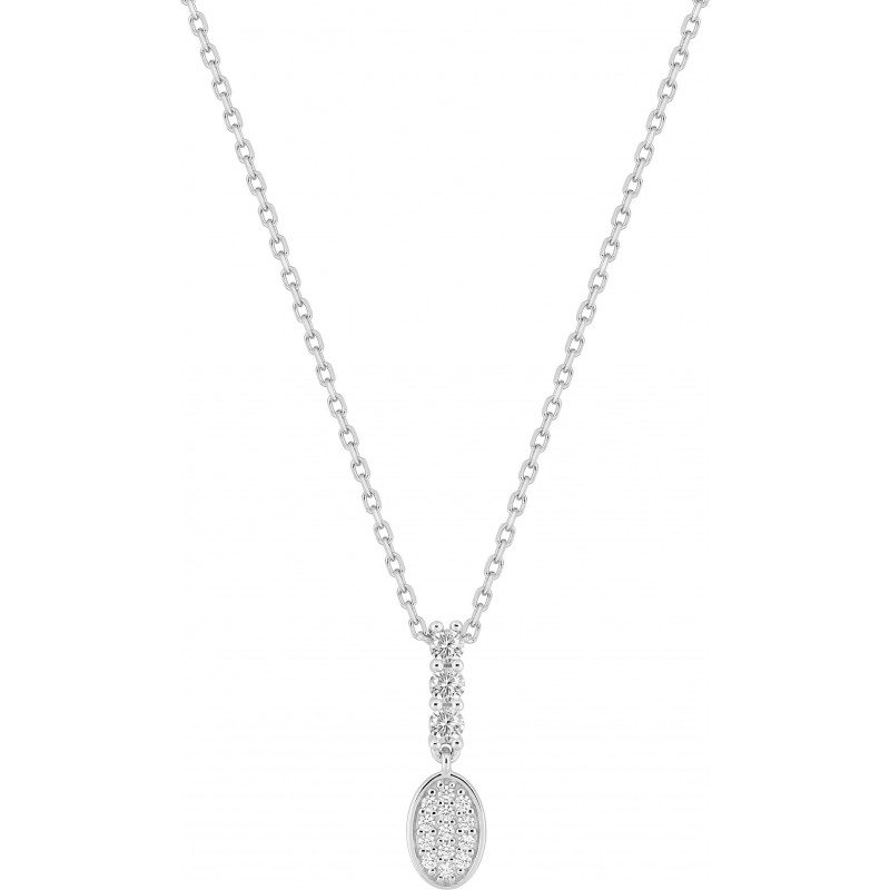 Collier en argent 925/1000 rhodié avec pendentif sertis d'oxydes de zirconium sur chaine maille forçat. Fermoir anneau ressort. Longueur ajustable de 40cm à 45cm. Poids: 2.10g