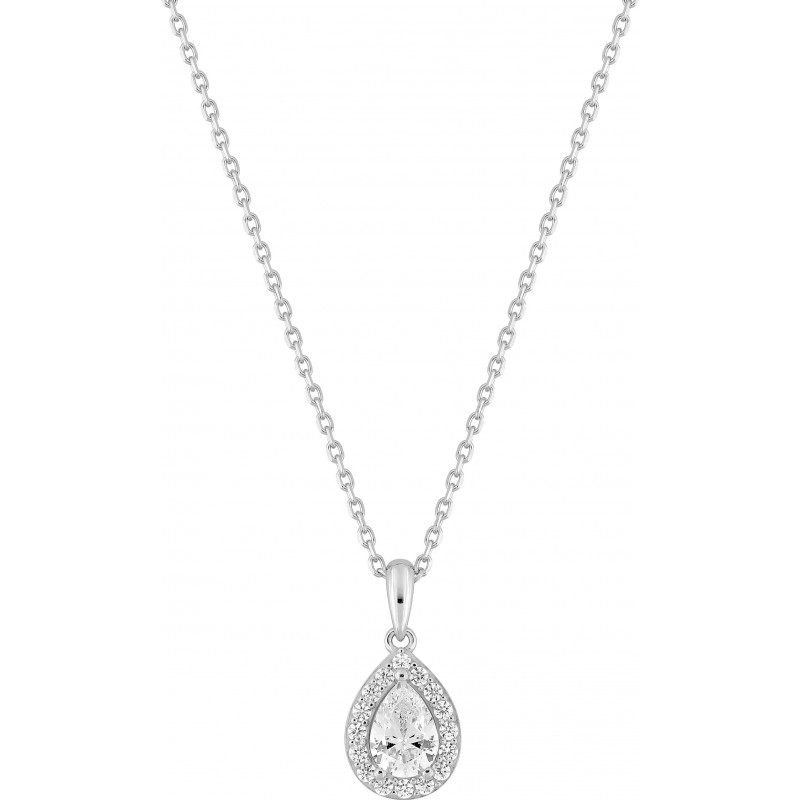 Collier en argent 925/1000 rhodié avec pendentif sertis d'oxydes de zirconium sur chaine maille forçat. Fermoir anneau ressort. Longueur ajustable de 40cm à 45cm. Poids: 2.50g