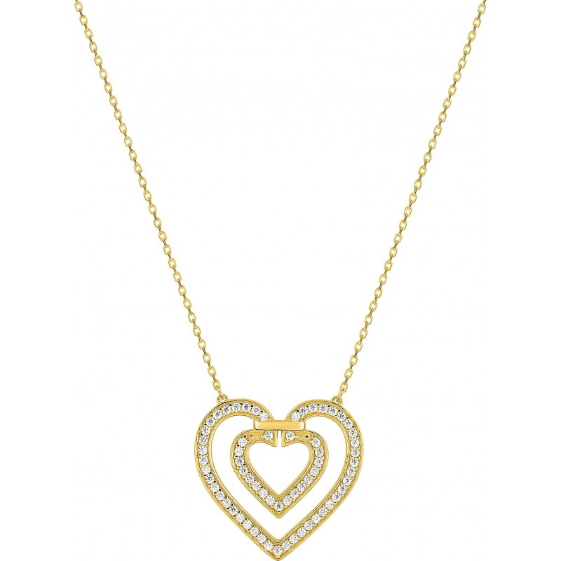 Collier en or 375/1000 jaune avec pendentif coeur sertis d'oxydes de zirconium sur chaine maille forçat. Fermoir anneau ressort. Longueur 42cm. Poids: 2.05g