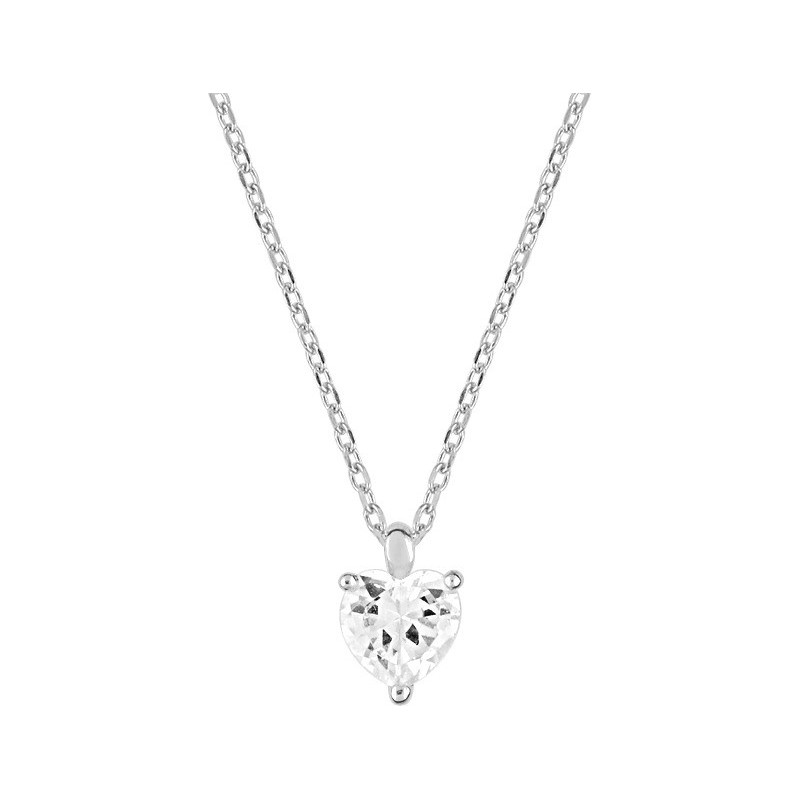 Collier en or blanc 375/1000 serti d'un oxyde de zirconium en coeur sur chaine maille forçat. Fermoir anneau ressort. Longueur 42cm. Poids: 1.40g