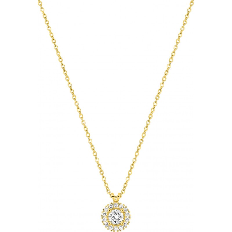 Collier en or 375/1000 jaune avec pendentif sertis de diamants de laboratoire (0.30ct) sur chaine maille forçat. Fermoir anneau ressort. Longueur ajustable de 40cm à 45cm. Poids: 1.55g