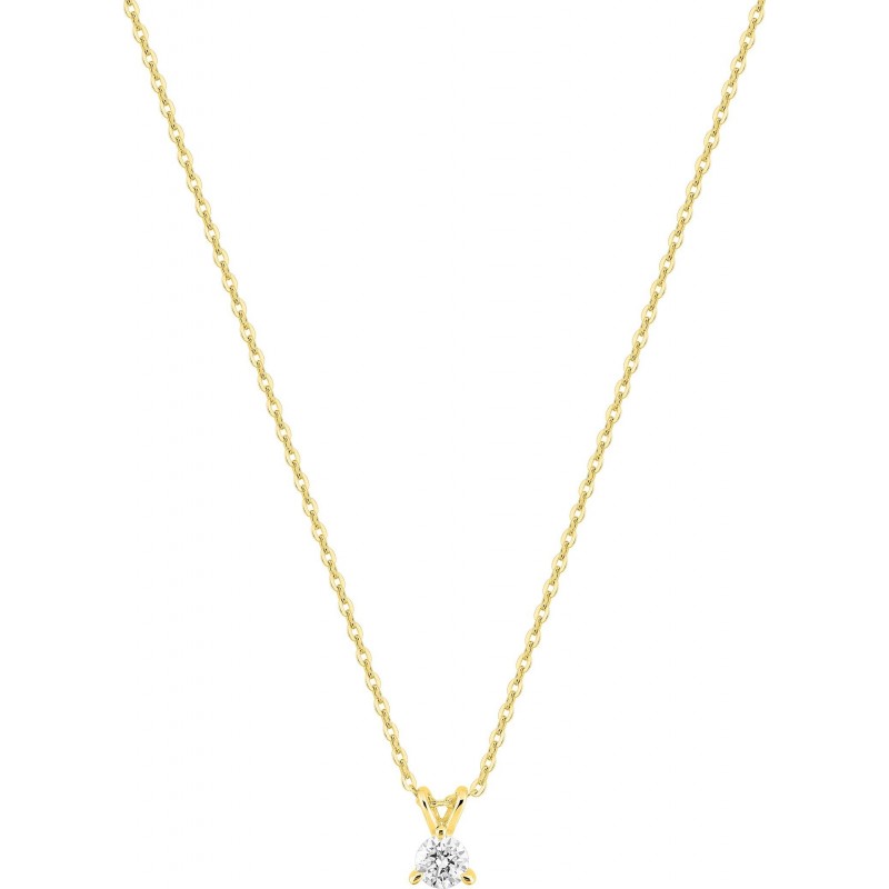 Collier en or 375/1000 jaune avec pendentif diamant de laboratoire (0.15ct) sur chaine maille forçat. Fermoir anneau ressort. Longueur ajustable de 40cm à 45cm. Poids: 1.30g