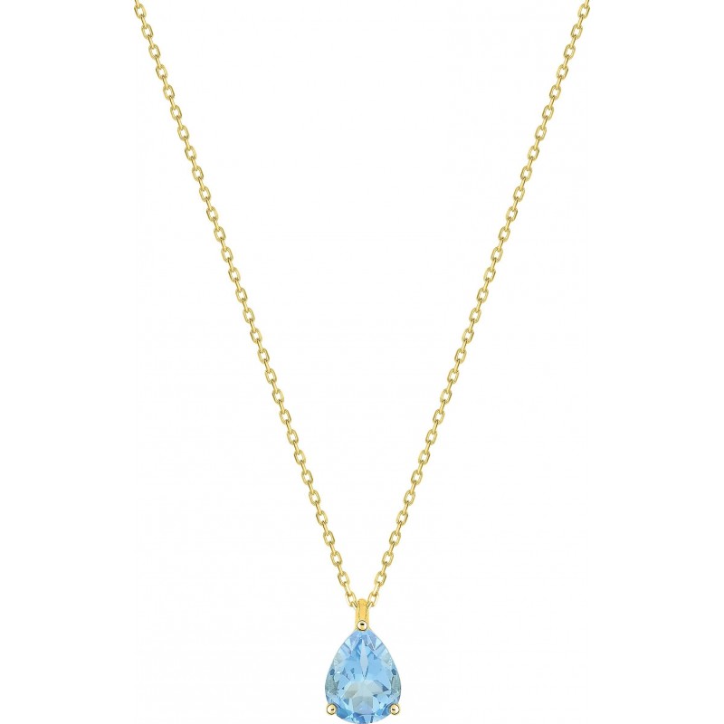 Collier en or 375/1000 jaune avec pendentif sertis d'une topaze sur chaine maille forçat. Fermoir anneau ressort. Longueur ajustable de 40cm à 42cm. Poids: 1.20g