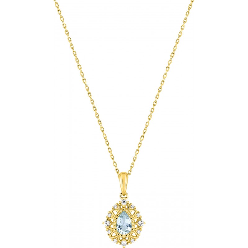 Collier en or 375/1000 jaune avec pendentif sertis de diamants (0.10ct) et d'une topaze sur chaine maille forçat. Fermoir anneau ressort. Longueur ajustable de 40cm à 42cm. Poids: 1.65g