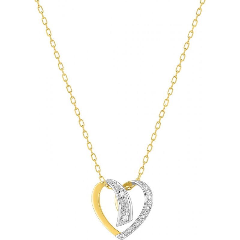 Collier en or 750/1000 jaune avec pendentif coeur sertis de diamants (0.01ct) sur chaine maille forçat. Fermoir anneau ressort. Longueur 45cm. Poids: 2.25g