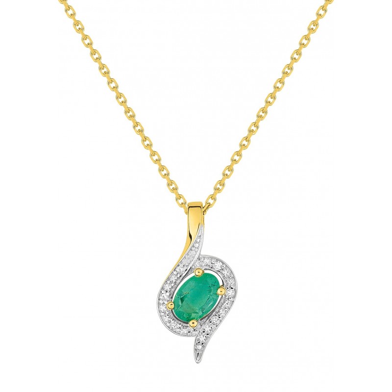 Collier en or 750/1000 jaune avec pendentif emeraude sertis de diamants (0.03cts) sur chaine maille forçat. Fermoir anneau ressort. Longueur 42cm. Poids: 2.75g