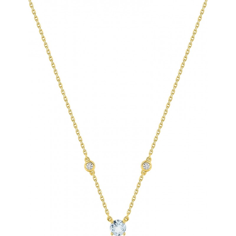Collier en or 750/1000 jaune avec pendentif aigue marine et oxydes de zirconium sur chaine maille forçat. Fermoir anneau ressort. Longueur ajustable de 40cm à 45cm. Poids: 1.80g.