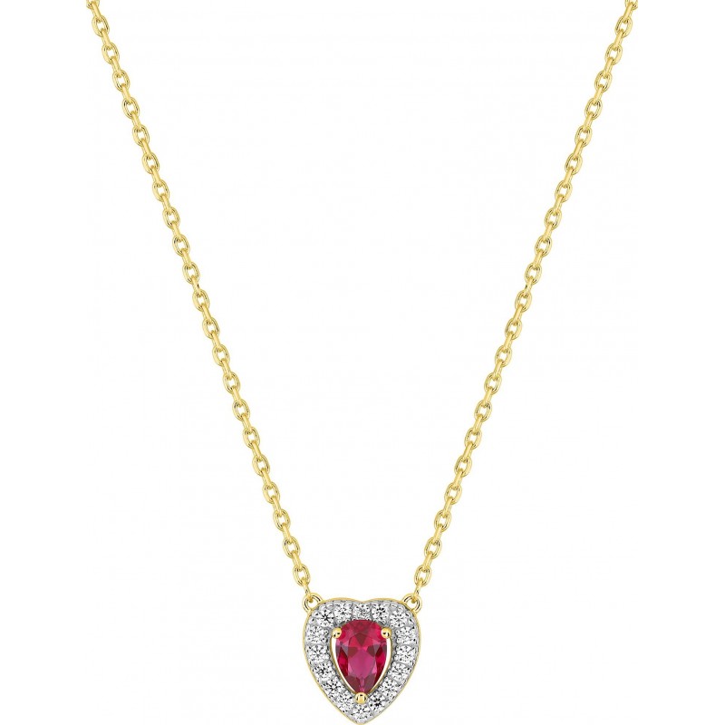 Collier en plaque or avec pendentif sertis d'oxydes de zirconium rouge et blancs sur chaine maille forçat. Fermoir anneau ressort. Longueur ajustable de 40cm à 45cm.