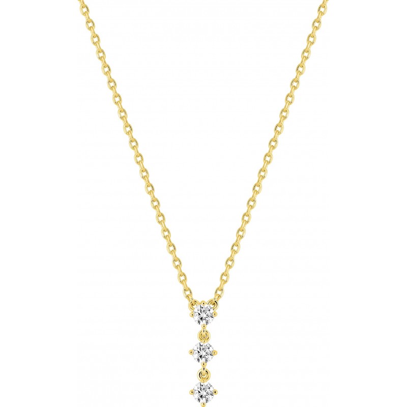Collier en plaque or avec pendentif sertis d'oxydes de zirconium sur chaine maille forçat. Fermoir anneau ressort. Longueur ajustable de 40cm à 45cm.