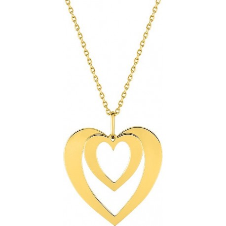 Collier en plaque or avec pendentif coeur sur chaine maille forçat. Fermoir anneau ressort. Longueur ajustable de 40cm à 45cm.