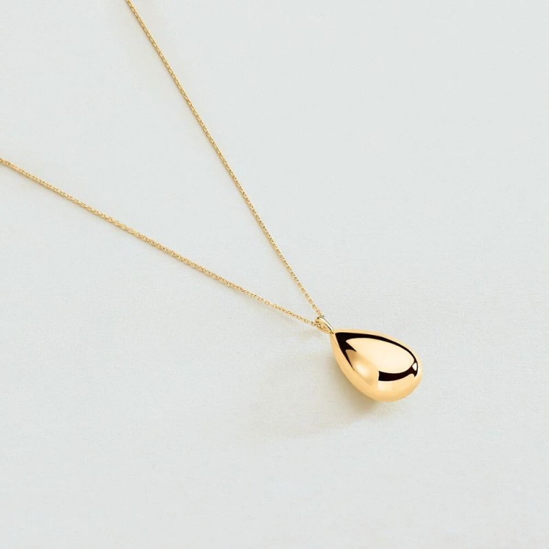 Collier AGATHA en plaque or avec pendentif goutte sur chaine maille forçat. Fermoir mousqueton. Longueur ajustable de 55cm à 60cm.