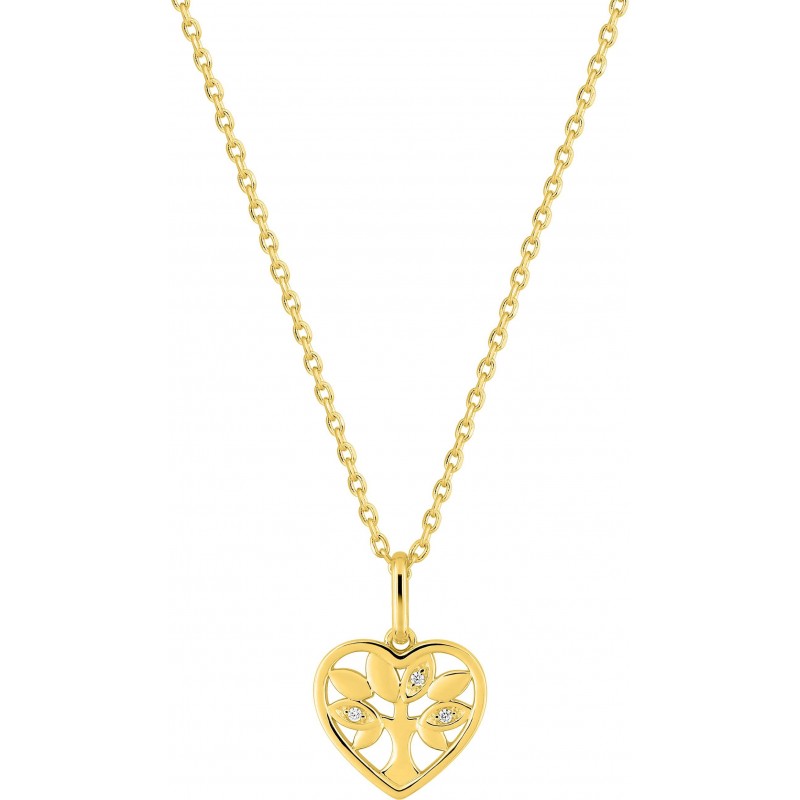 Collier en plaque or avec pendentif coeur sertis d'oxydes de zirconium sur chaine maille forçat. Fermoir anneau ressort. Longueur ajustable de 40cm à 45cm.