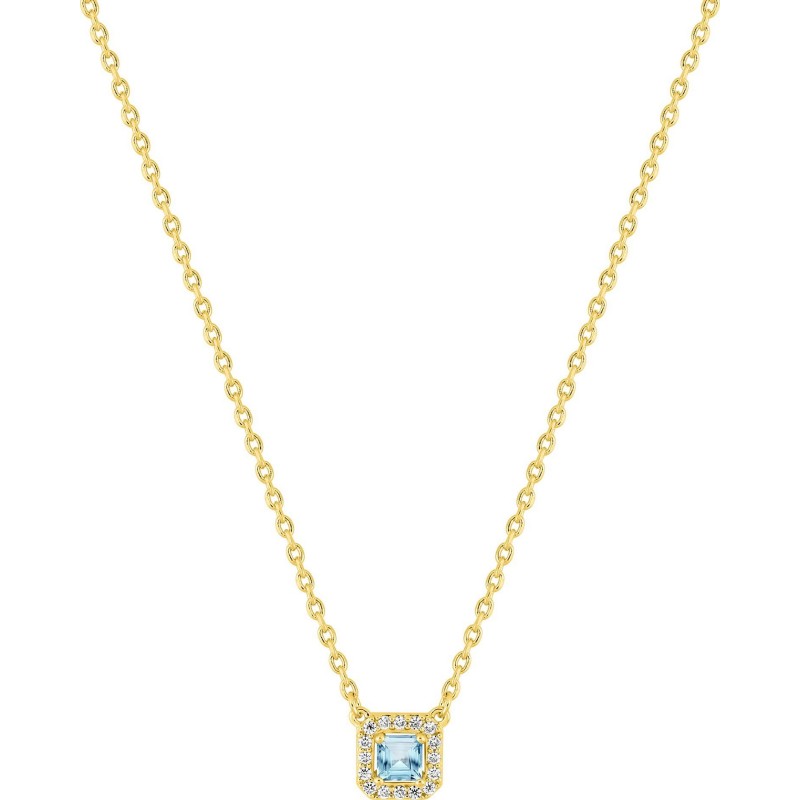 Collier en plaque or avec pendentif sertis d'oxydes de zirconium blancs et bleus sur chaine maille forçat. Fermoir anneau ressort. Longueur ajustable de 40cm à 45cm.