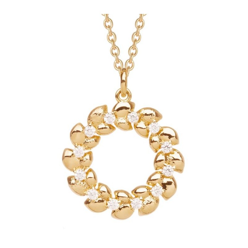Collier en plaque or avec pendentif sertis d'oxydes de zirconium sur chaine maille forçat. Fermoir anneau ressort. Longueur ajustable de 40cm à 45cm.