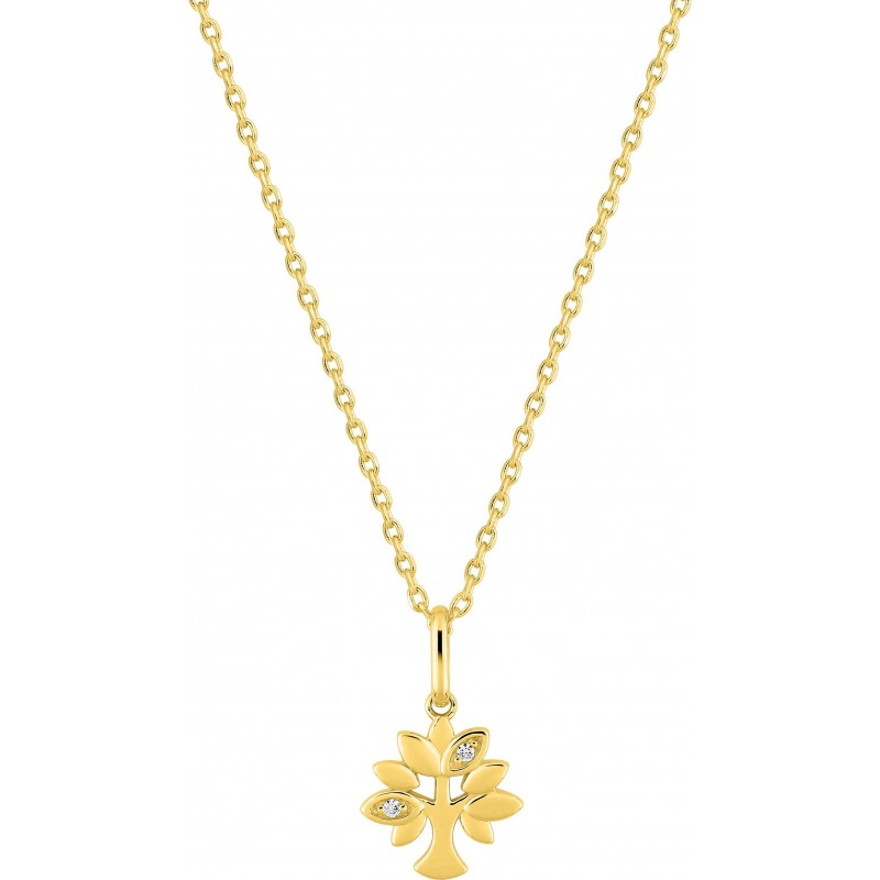 Collier en plaque or avec pendentif arbre de vie sertis d'oxydes de zirconium sur chaine maille forçat. Fermoir anneau ressort. Longueur ajustable de 40cm à 45cm.