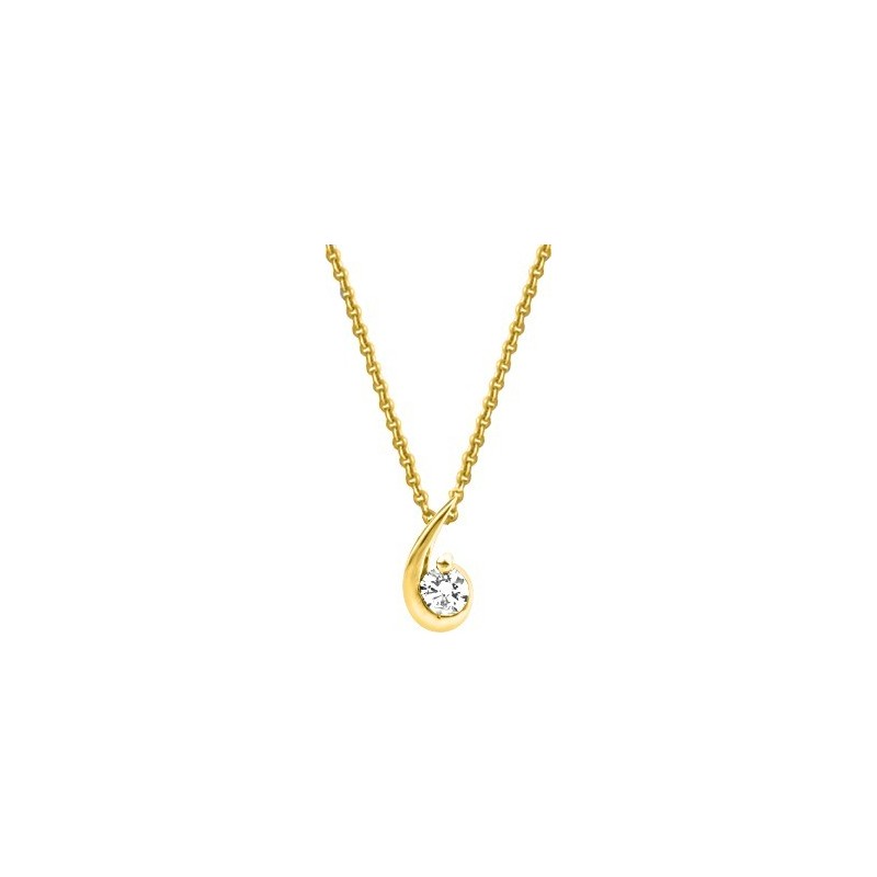 Collier en plaque or avec pendentif oxyde de zirconium sur chaine maille forçat. Fermoir anneau ressort. Longueur ajustable de 40cm à 45cm.