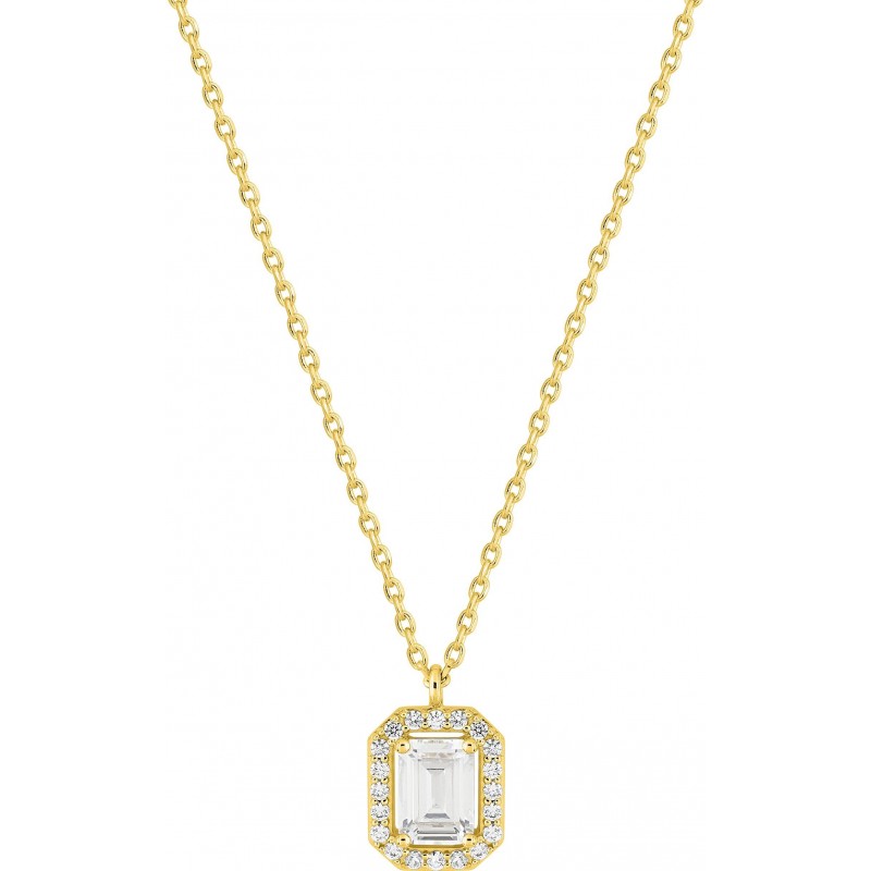 Collier en plaque or avec pendentif serti d'oxydes de zirconium sur chaine maille forçat. Fermoir mousqueton. Longueur ajustable de 40cm à 42cm.