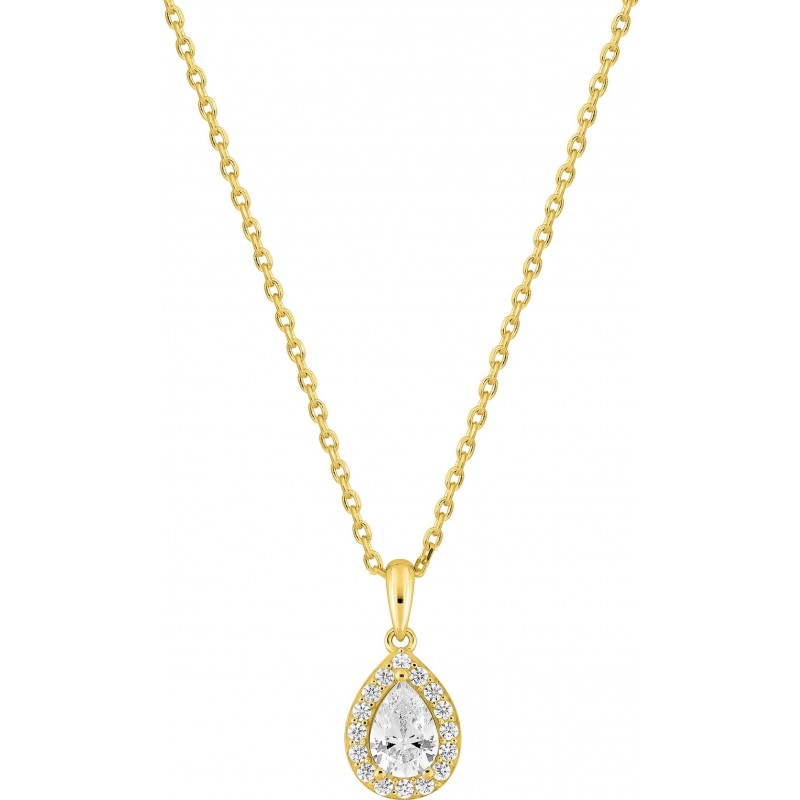 Collier en plaque or avec pendentif serti d'oxydes de zirconium sur chaine maille forçat. Fermoir mousqueton. Longueur ajustable de 40cm à 42cm.